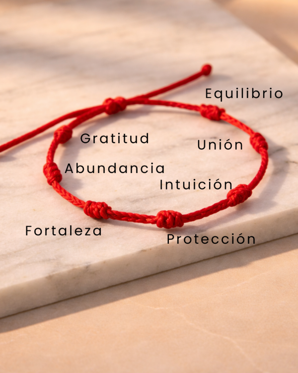 La pulsera de 7 nudos es un amuleto ancestral utilizado para proteger contra energías negativas, envidias y mal de ojo.