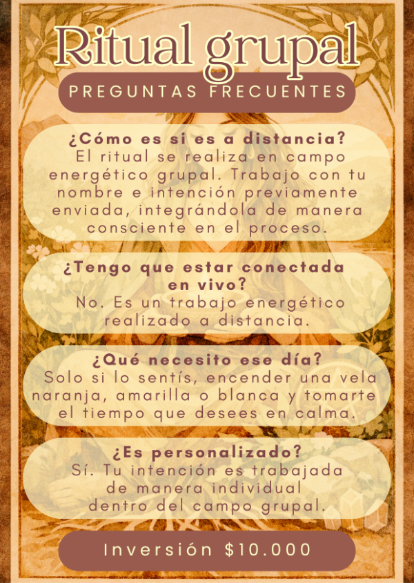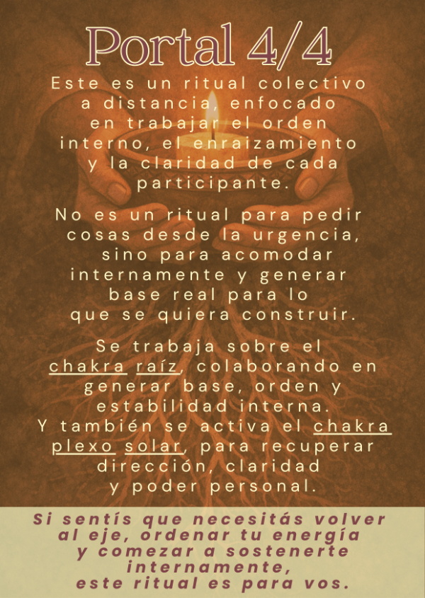 Este ritual colectivo a distancia está enfocado en trabajar el chakra raíz (base) y el plexo solar (dirección), ayudándote a generar estabilidad interna, claridad y enfoque.